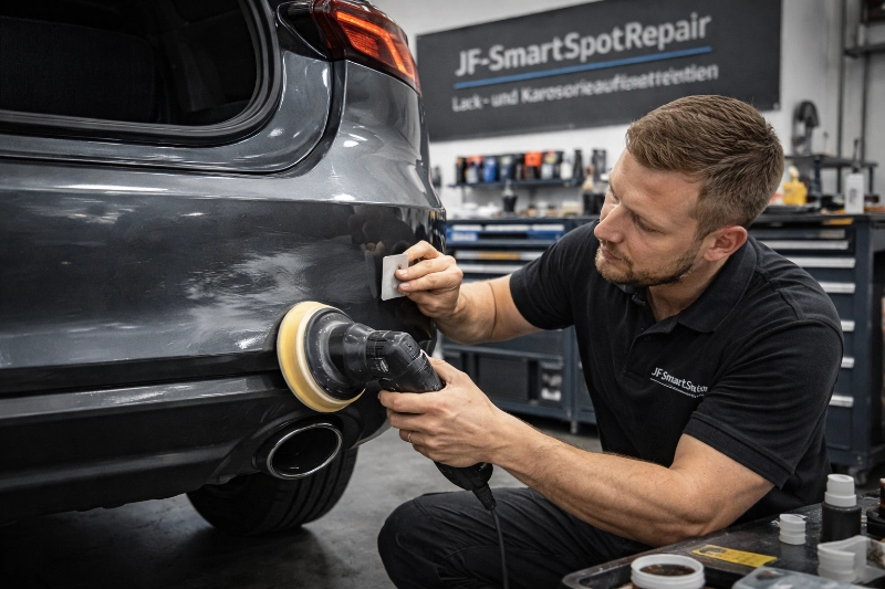 Parkschäden sind eine häufige Ursache für Lackschäden, insbesondere an Stoßstangen. Die Reparatur dieser Schäden erfordert spezielle Techniken, da Stoßstangen oft aus Kunststoff bestehen. Hier kommt Smart Repair ins Spiel, da es ermöglicht, kleine Dellen und Kratzer präzise zu beheben, ohne die gesamte Stoßstange lackieren zu müssen.